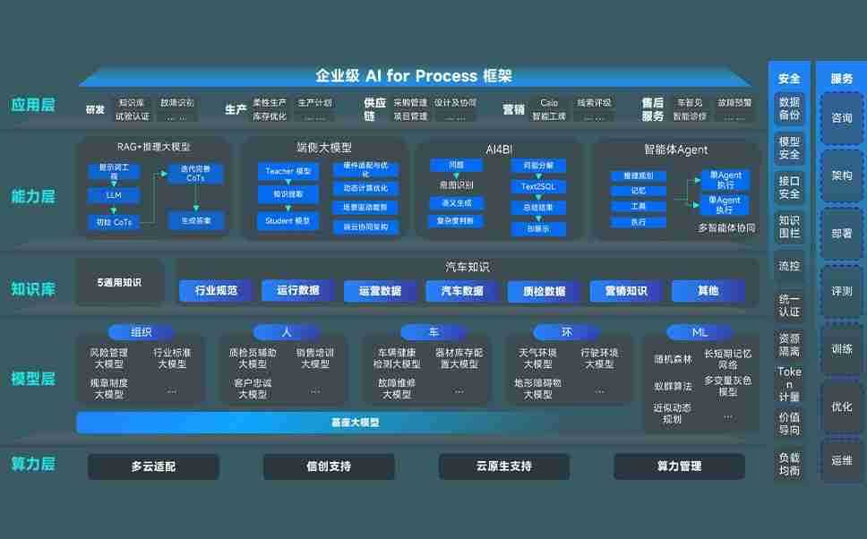 端到端的一站式AI工作空间深度融合了从企业战略规划到日常经营的全流程业务板块,,定向解决车企内部领域多、、部门多、、链条长、、场景碎片化等难题,,,,支持车企快速构建以AI为核心的生产力写作体系,,,,实现任务执行与AI能力的无缝集成与交互