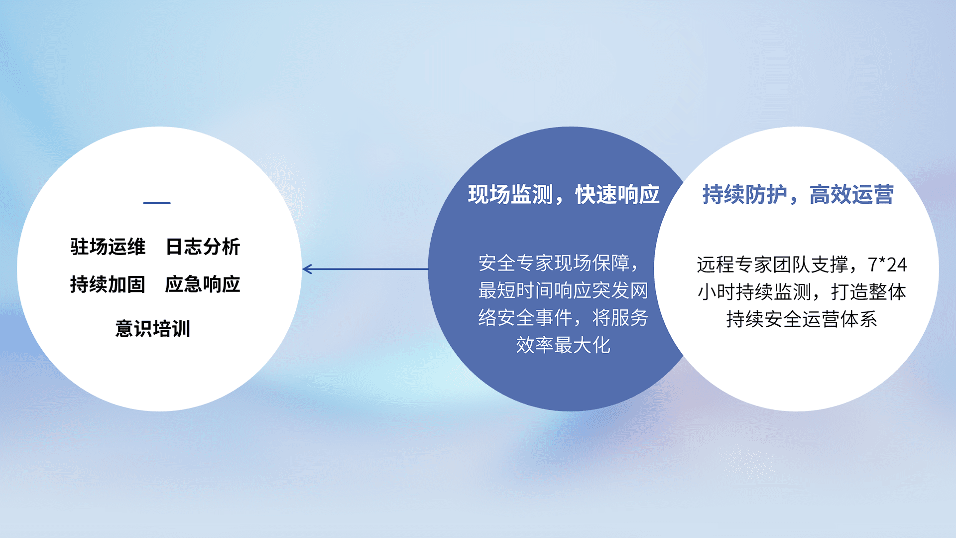 针对客户行业特性,,,提供专属的一站式安全管理服务,,,帮助客户全面感知网络空间威胁,,通过安全专家的线上、、、线下防护支持,,实现风险闭环,,,将安全保障常态化,,为客户打造常态化安全运维运营服务。。。。